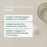 Kollageeni on tärkeää ihon sileyden ja kimmoisuuden kannalta. Vaikka elimistö tuottaa sitä luonnostaan, sen teho heikkenee iän myötä. Tässä Collagen Skin Improver voi auttaa.